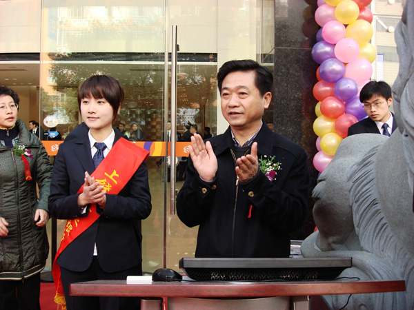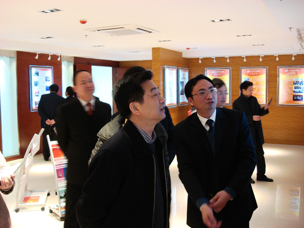 儀式結束后,陳平常務副市長、胡德海書記等領導在夏勤儉董事長的陪同下興致勃勃地參觀了上饒市商業銀行辦公大樓。