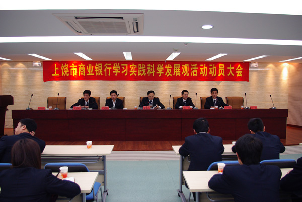 2009年3月20日晚,上饒市商業銀行學習實踐科學發展觀活動動員大會在總行七樓會議室舉行。會議上,上饒市商業銀行學習實踐科學發展觀活動領導小組組長、董事長夏勤儉作動員報告,學習實踐領導小組副組長王衛閩主持會議并對此次活動進行了具體部署。