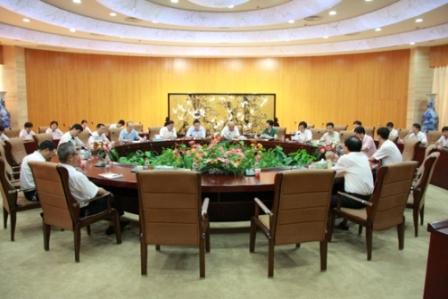 夏勤儉董事長就我行成立以來發展概況以及更名、跨區域發展、公務卡業務等下一階段工作重點向肖玉淮局長作了簡要匯報。