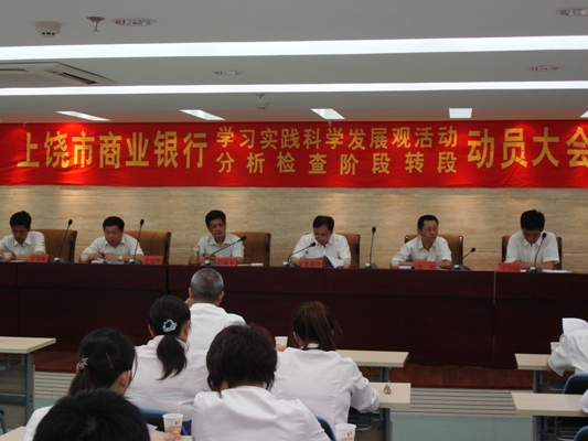 5月11日晚,上饒市商業銀行召開學習實踐科學發展觀活動分析檢查階段轉段動員大會,全體黨員及中層以上干部參加了會議。