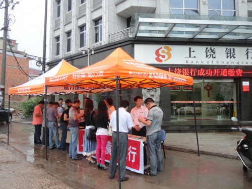 活動當(dāng)日,為更好推進“繳費一卡通”業(yè)務(wù)宣傳,支行與橫峰供電有限責(zé)任公司共同開展了推廣活動。支行通過播放LED宣傳標(biāo)語、懸掛橫幅、搭宣傳臺、發(fā)放宣傳折頁等方式向過往的人群介紹了我行“繳費一卡通”的突出優(yōu)勢、簽約流程、特點和機具使用的便利性;并派員到縣供電公司收費大廳向繳費居民做了宣傳,邀請橫峰電臺為支行“繳費一卡通”首次推出做了宣傳報道。此次宣傳吸引了很多過往群眾前來咨詢,通過現(xiàn)場演示得到了群眾的一致好評,推進了我行“繳費一卡通”業(yè)務(wù)的發(fā)展。“繳費一卡通”業(yè)務(wù)在縣域的成功上線使我行三清山卡的便民功能得到進行一步拓展。