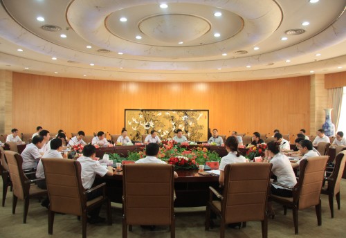 夏勤儉董事長等行領導及分支機構負責人就我行今年經營運行情況、各項工作及經營發展中存在的問題向調研組做了匯報。郭漢強紀委書記一行認真聽取了匯報,充分肯定了我行在各項工作上取得的成績,并結合當前國內外經濟形勢,對我行業務發展給予了風險提示。