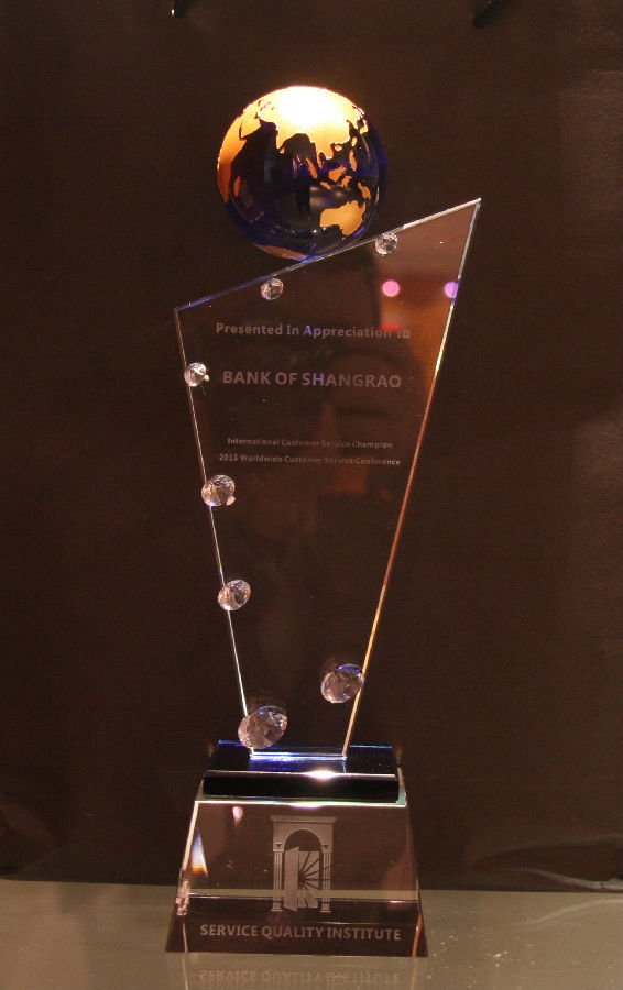 日前,在“服貿大智匯”國際論壇暨美國服務質量協會SQI中國年會上,我行獲得“2015全球優質客戶服務獎”,該獎項在2萬余家上海外服服務的客戶單位中決出,美國服務質量協會SQI創始人兼主席約翰·舍爾先生向獲獎機構頒獎,我行俞堅副行長出席年會接受頒獎并致辭。