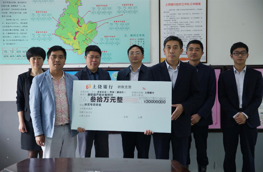 4月25日,我行夏勤儉董事長、曹長發(fā)行長助理一行在鄱陽縣委常委、常務副縣長楊秀福、蘆田鄉(xiāng)黨委書記周共育等陪同下,冒雨前往鄱陽縣蘆田鄉(xiāng)板橋村開展扶貧工作。
