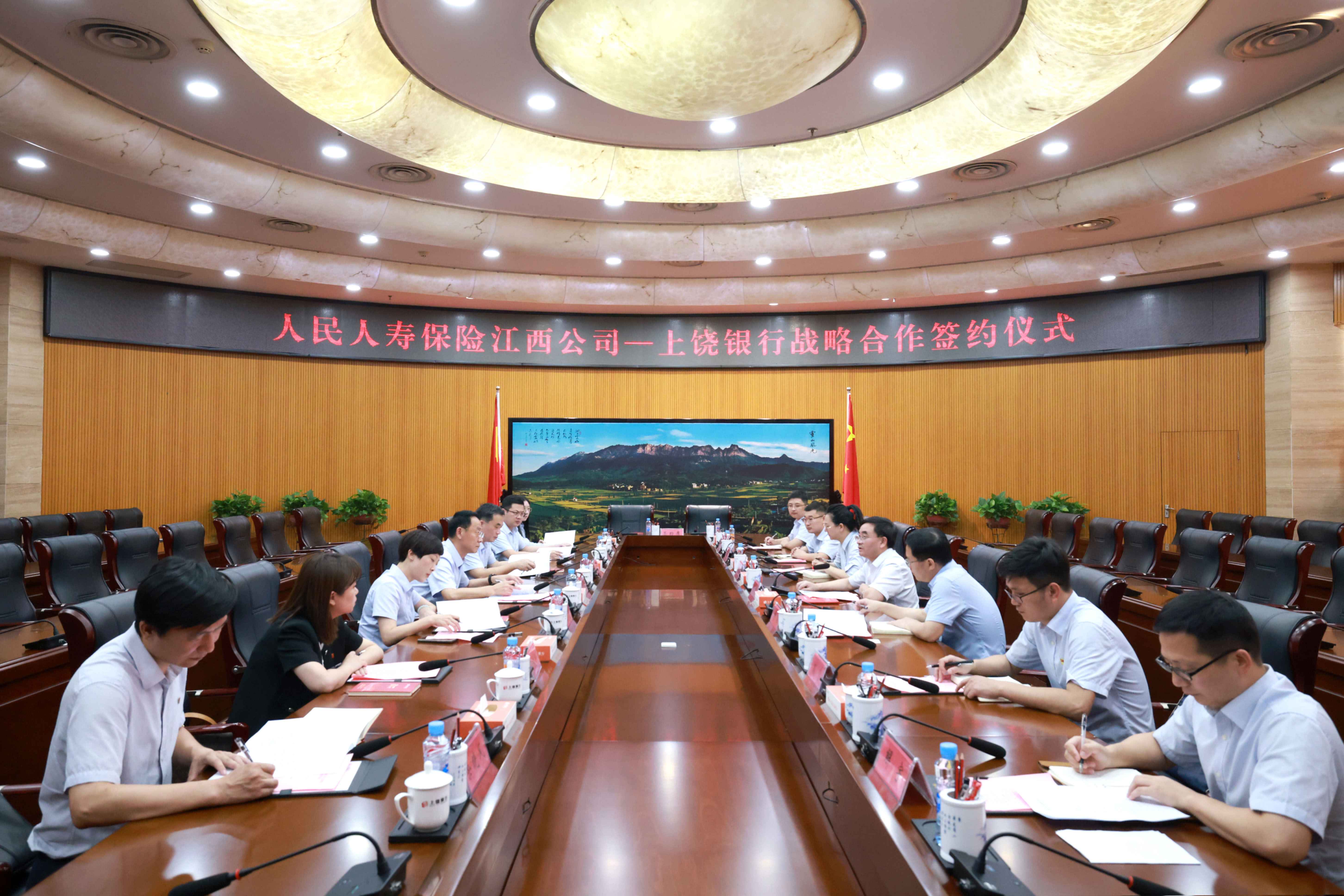 7月11日,上饒銀行與中國人民人壽保險江西省分公司戰略合作簽約儀式在上饒銀行總行舉行。上饒銀行黨委書記、董事長傅炳生,中國人民人壽保險江西省分公司黨委書記、總經理曹強分別講話。上饒銀行黨委委員、副行長俞堅,中國人民人壽保險江西省分公司黨委委員、副總經理劉暉代表雙方簽約。中國人民人壽保險江西省分公司相關領導及上饒銀行相關部室負責人出席簽約儀式。