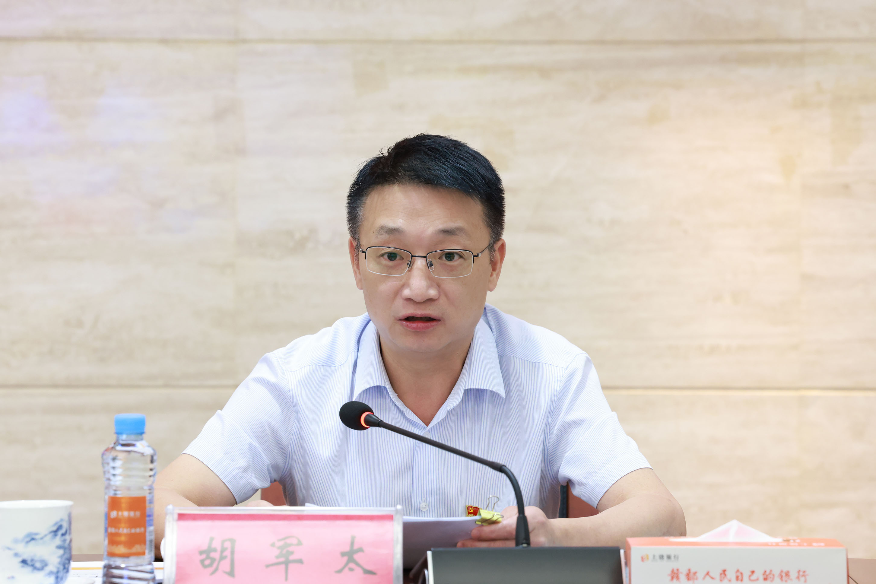黨委副書記、行長胡軍太作半年工作報告,黨委副書記、副董事長朱曉健主持會議,總行黨委副書記、監事會主席徐明,黨委委員、駐行紀檢組組長俞永春等行領導出席,駐行紀檢組、總行各部室、各分支行、各專營中心、各村鎮銀行通過現場或視頻方式參加會議。